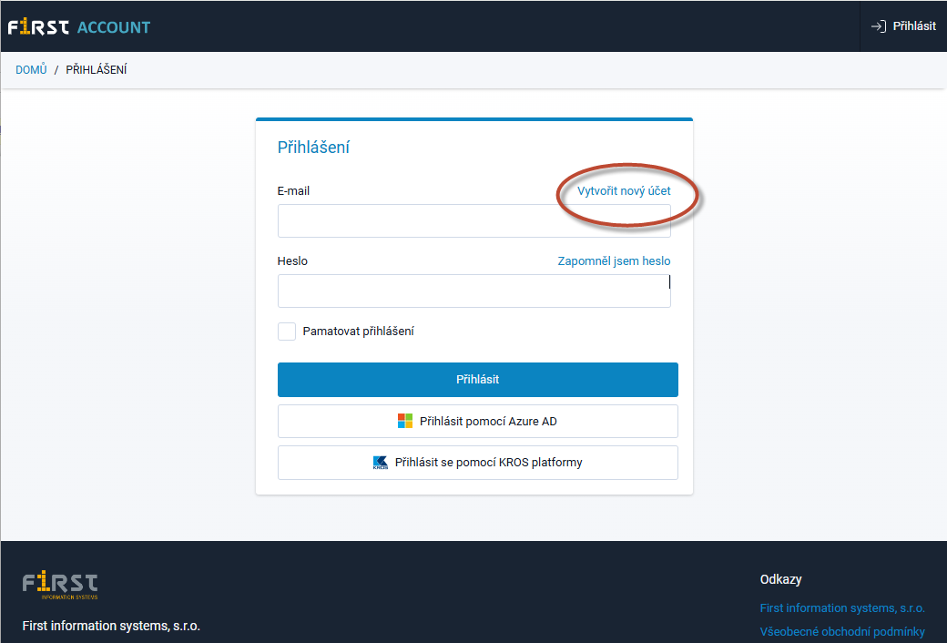 Zvolíte „Vytvořit nový účet“ a do následujícího formuláře vyplníte své údaje.