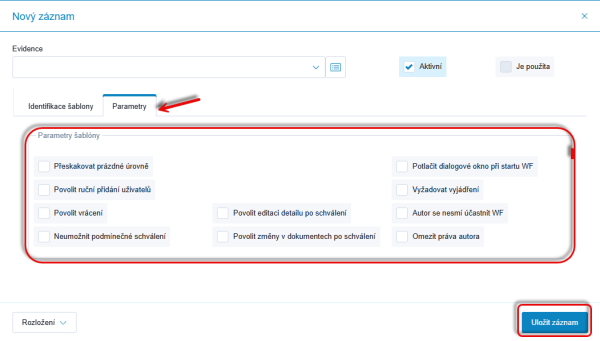 - Povolit editaci detailu po schválení - Po schválení WF je možné editovat detaily záznamu, nad kterým bylo schváleno WF.