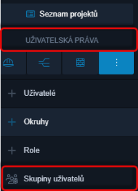 Vytvoření skupiny uživatelů provedeme v sekci Uživatelská práva, kde v menu vybereme - Skupiny uživatelů.