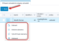 Uživatele můžeme editovat, zobrazit historii záznamu, vytvořit kopii a nebo ho můžeme odstranit.